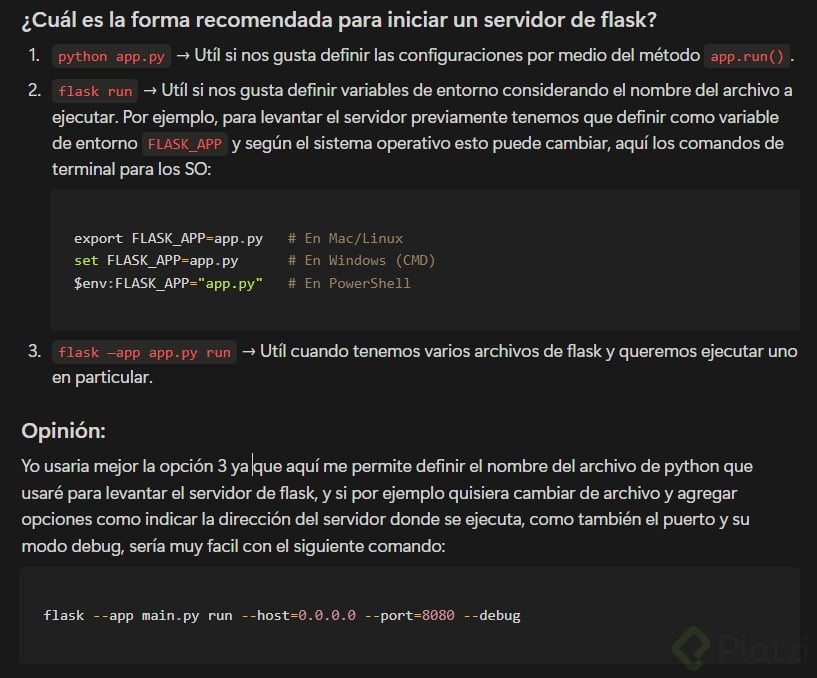 Existen dos formas principales de ejecutar una aplicación Flask: