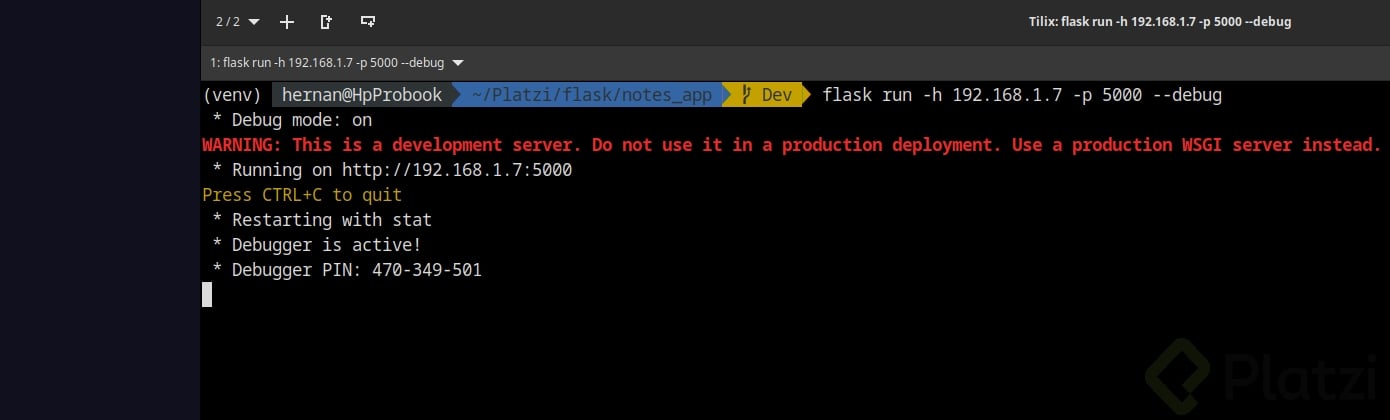 Para activar el modo de depuración con el comando Flask, usamos: