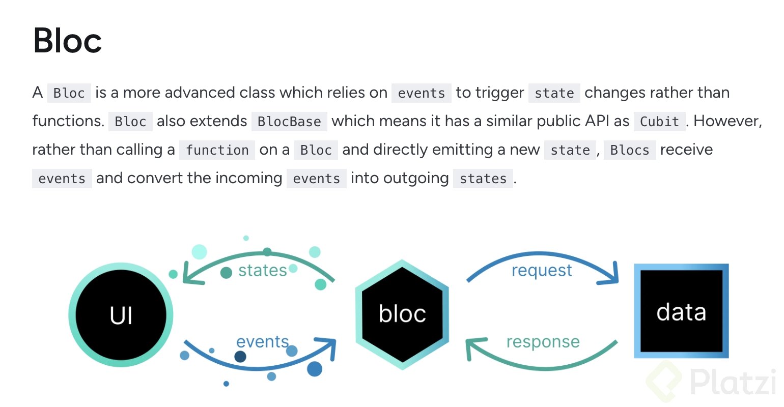 Para implementar correctamente la arquitectura BLoC en nuestra aplicación, necesitamos comprender sus cuatro componentes principales: