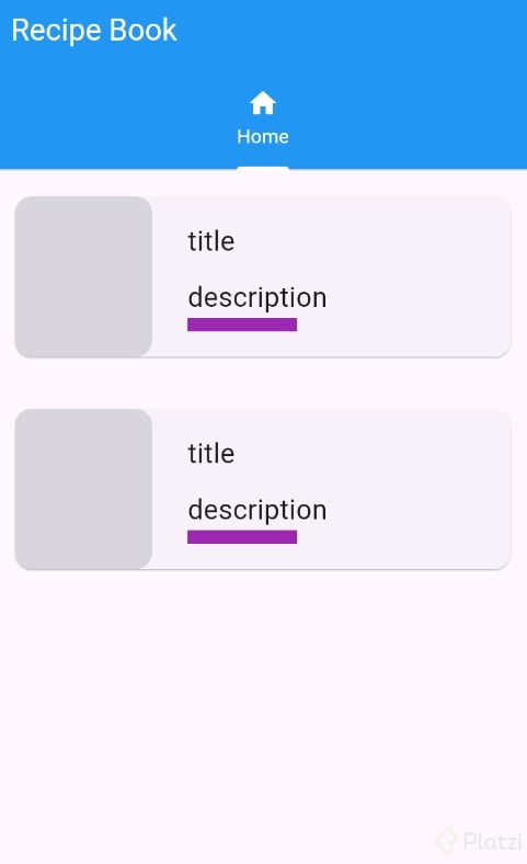 ReceipesCart. Este widget debe incluir unBuildContextpara heredar las propiedades de la aplicación principal. - Incluye la estructura de la tarjeta (como un