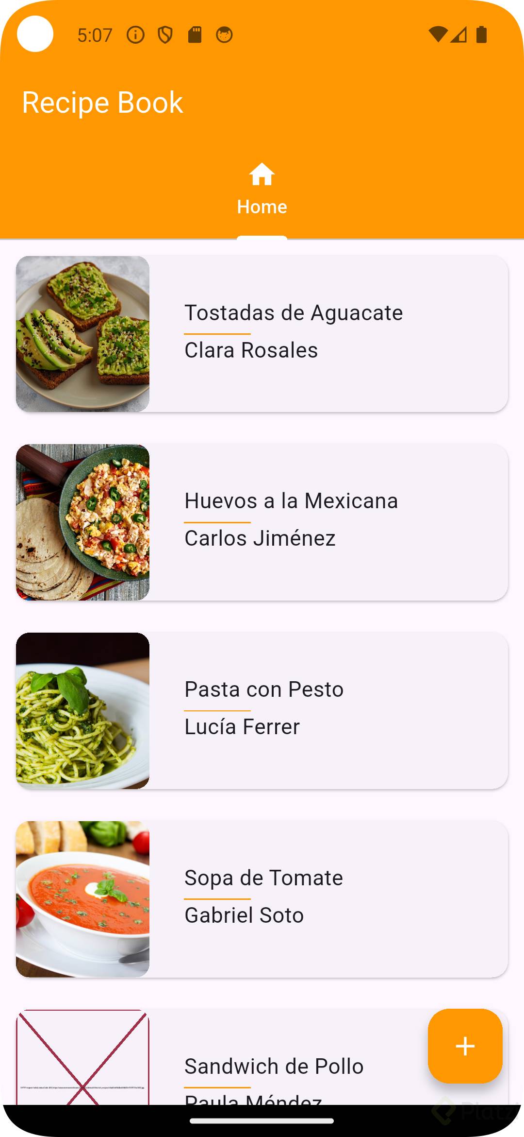 RecipeCard, para encapsular el diseño de cada elemento. - Los datos del JSON, como nombre, imagen y autor, se asignan directamente a las propiedades del widget.