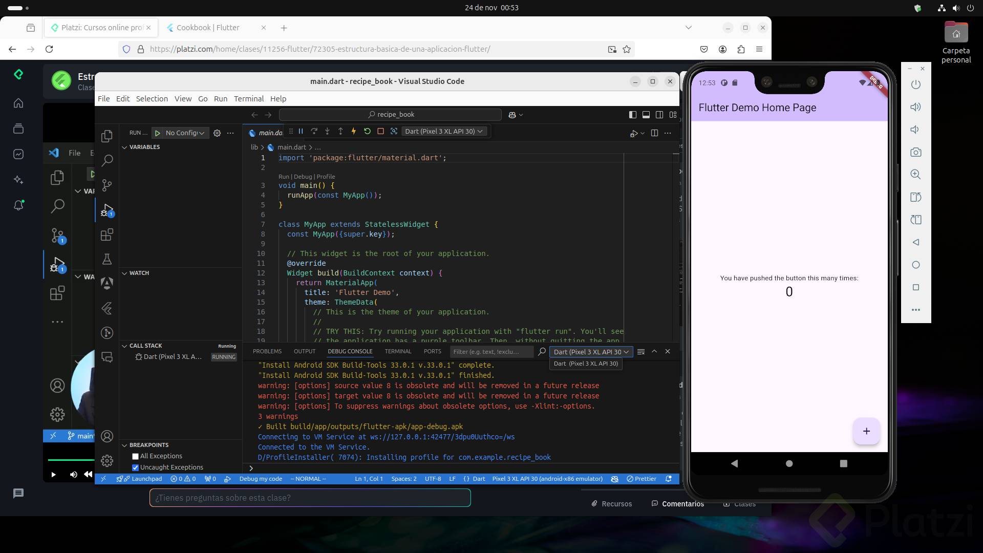flutter runo simplemente presiona F5 para ejecutar la aplicación.