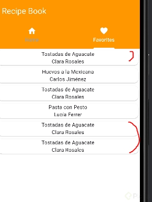 Botón de Favoritos: Al marcar una receta como favorita, debe reflejarse correctamente en la sección de favoritos. Sin embargo, como se observó, había un problema que impedía agregar recetas correctamente a la lista de favoritos.