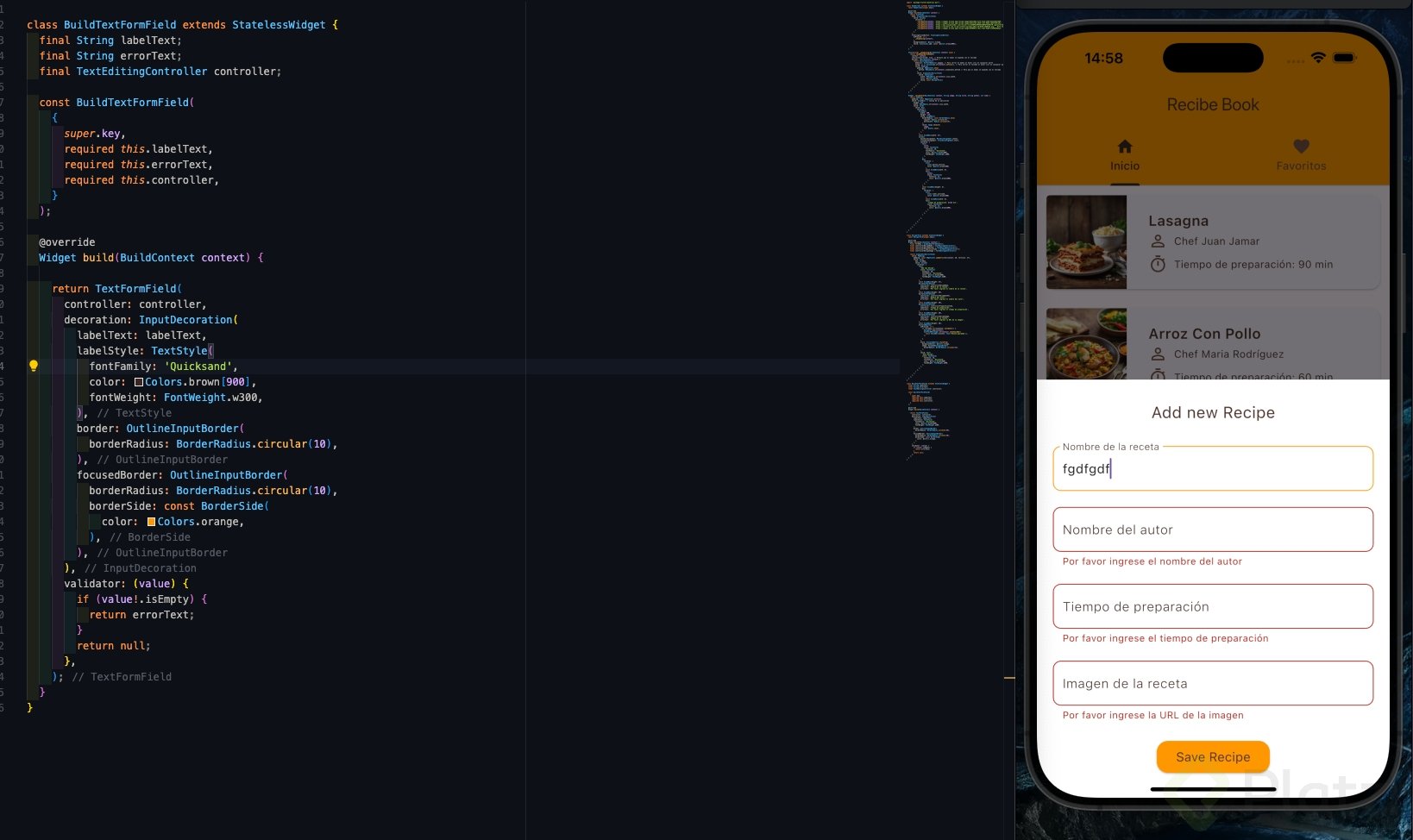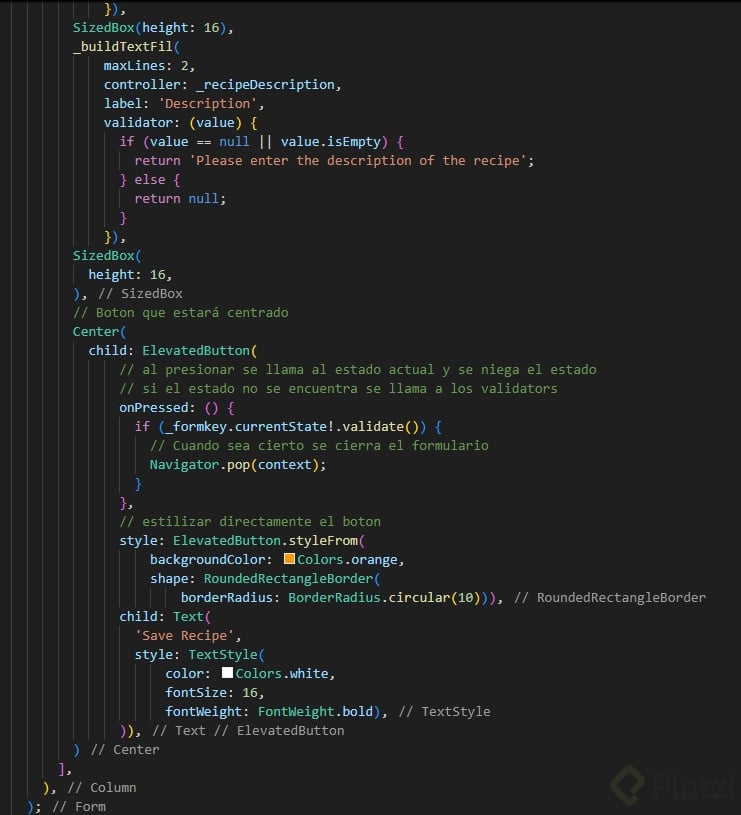 GlobalKey<FormState>para manejar el estado del formulario. - Los validadores son funciones asociadas a cada campo, verificando si este está vacío o contiene datos incorrectos.