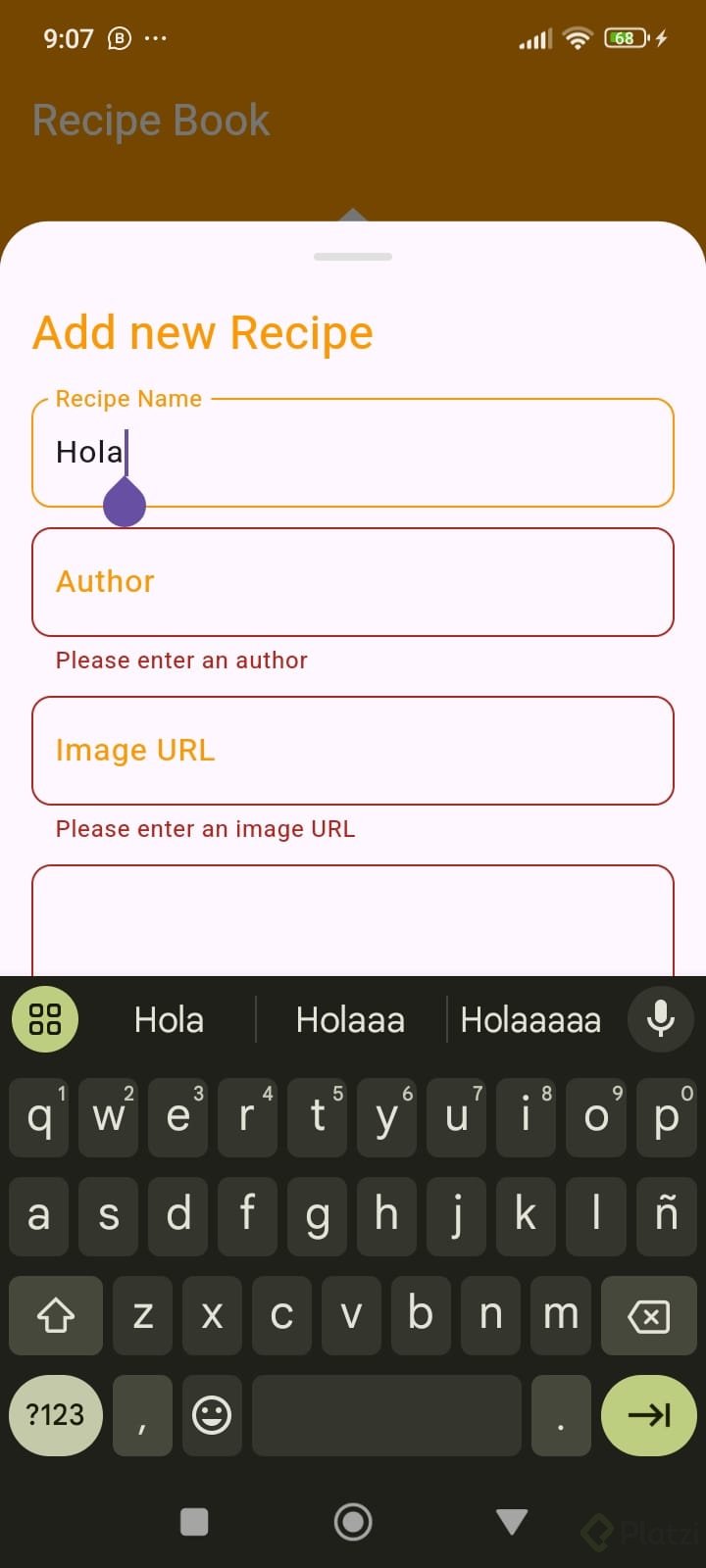 - Los campos requeridos son: nombre, autor, URL de imagen y descripción de la receta.