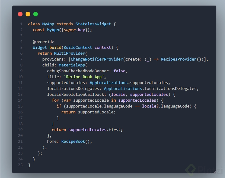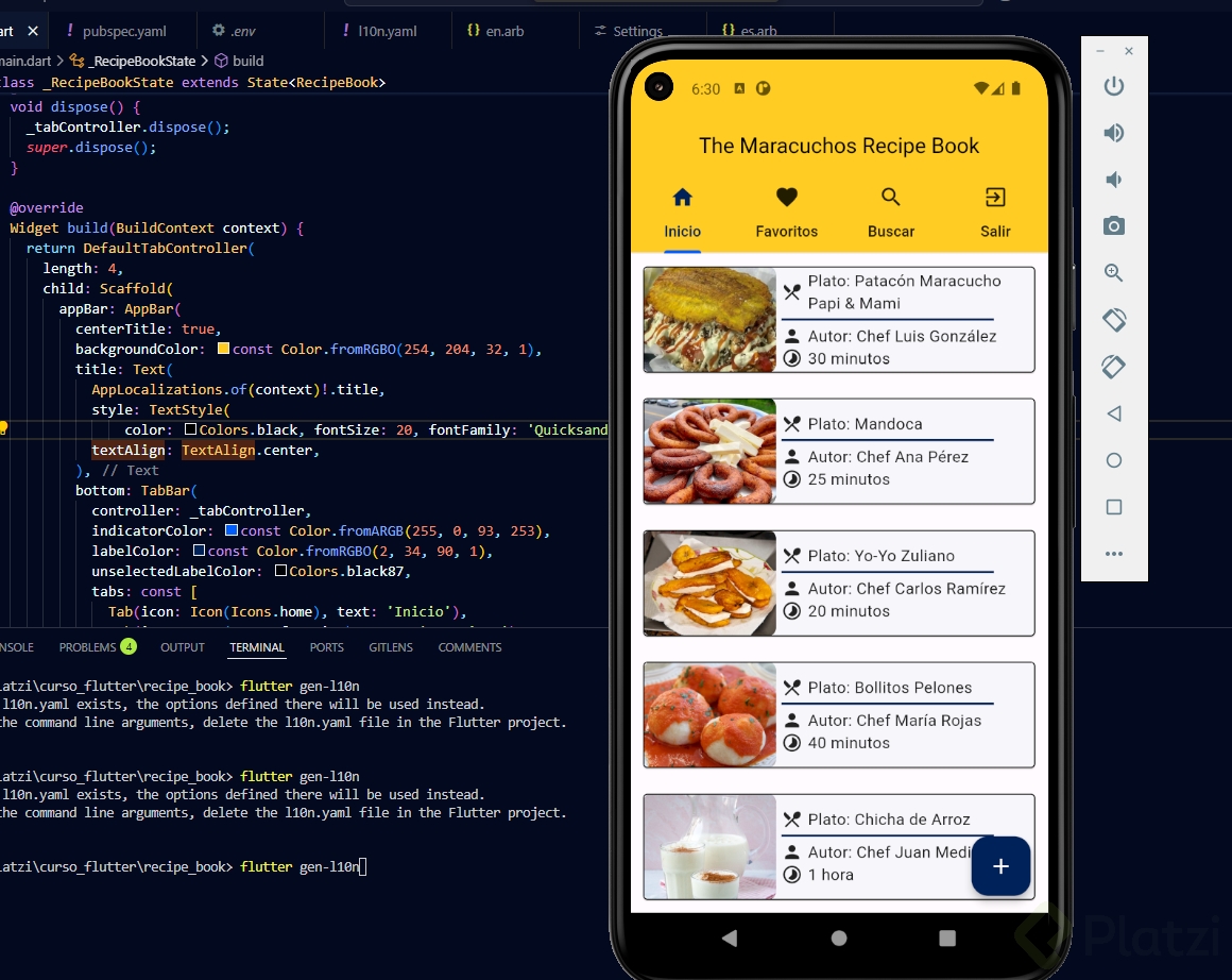 localizationDelegatesysupportedLocalesen elMaterialApppara gestionar las traducciones. - Importa archivos necesarios como