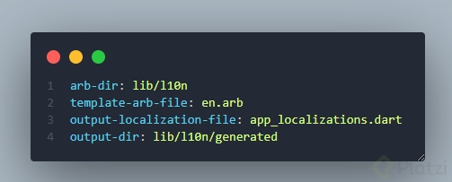 l10n, crea dos archivos de traducción con la extensión.arb. Por ejemplo:en.arbpara el inglés.es.arbpara el español.