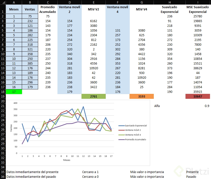 AVERAGEen los datos disponibles para determinar la primera observación. Esto se realiza utilizando las ventas registradas, por ejemplo. -