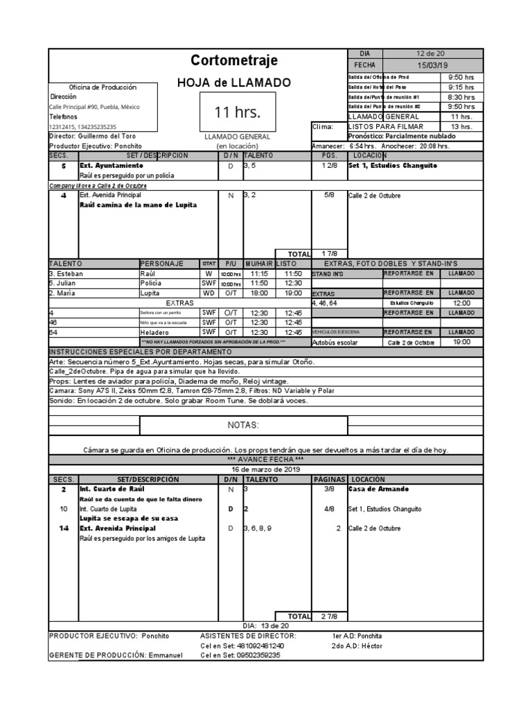 Creación y Uso de Hojas de Llamado en Producción Audiovisual