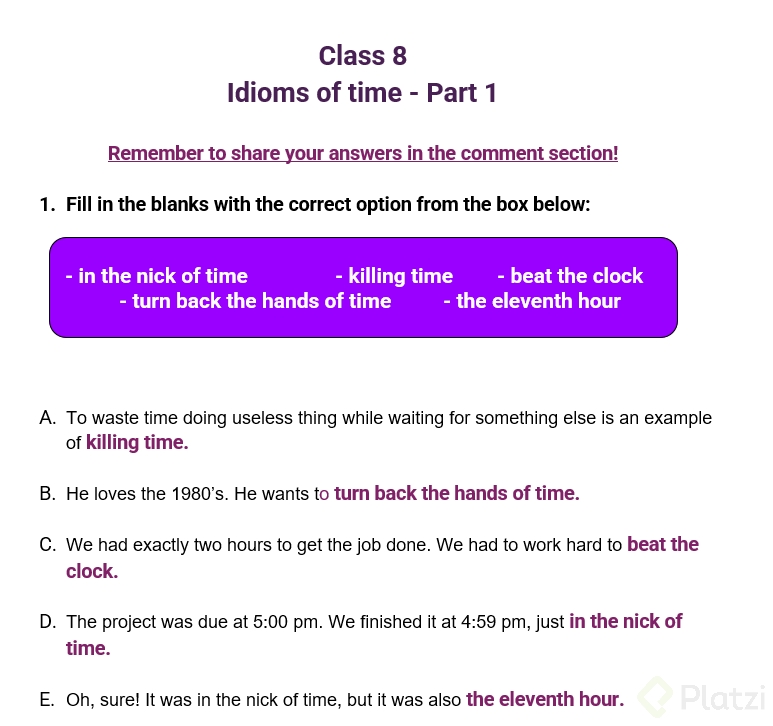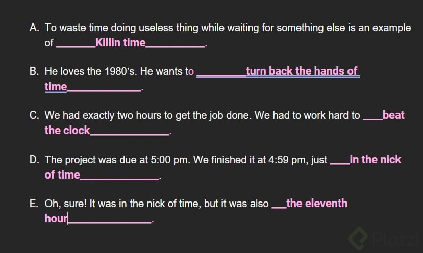 Idioms de Tiempo en Inglés: Ejercicio de Comprensión y Práctica