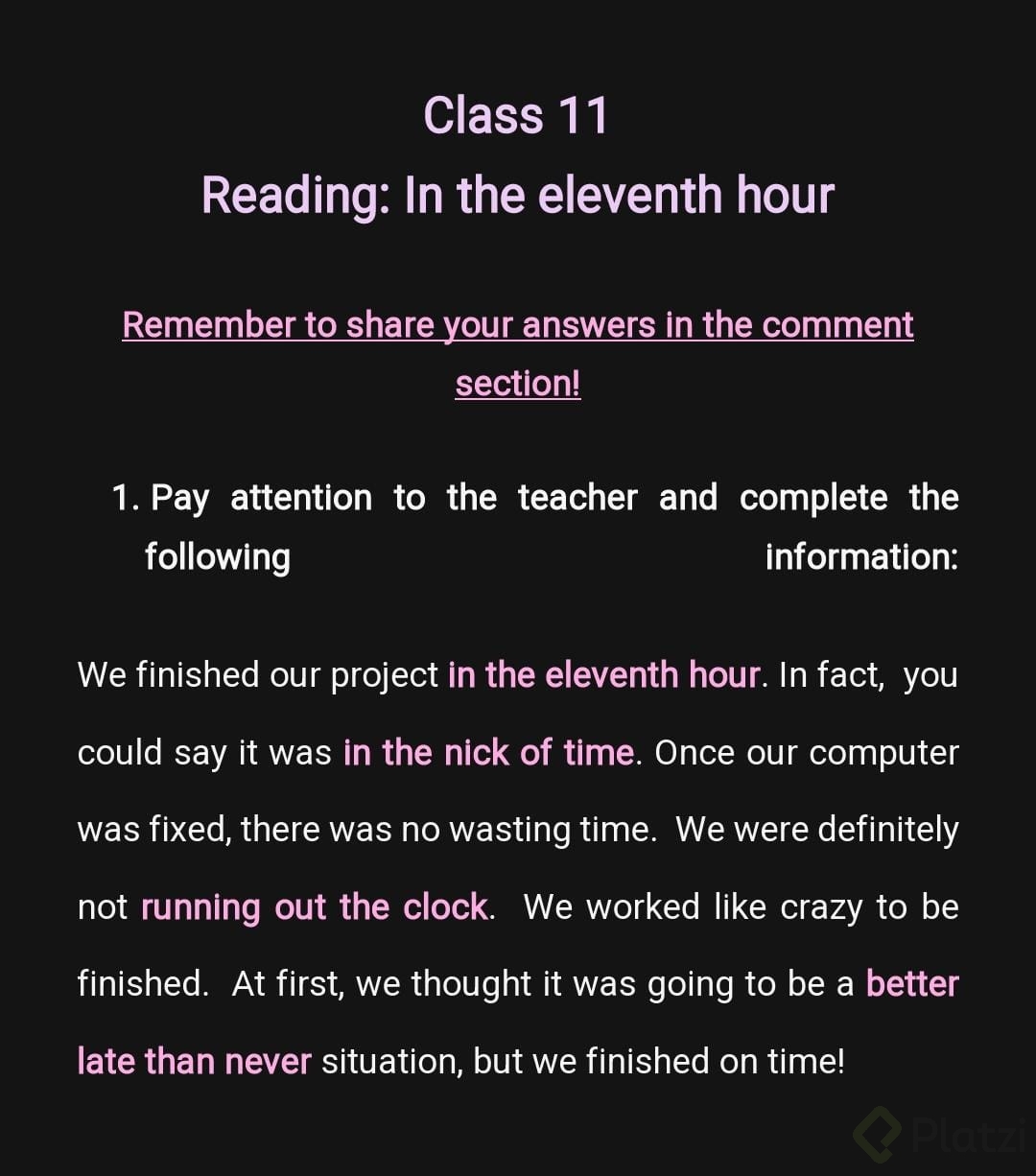 Idioms de Tiempo en Inglés: Ejercicio de Comprensión y Práctica