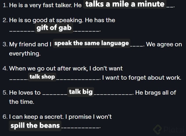Now that you have completed the exercise, what about giving your own examples using the previous idioms? Be as creative as possible! Leave them in the comment section.