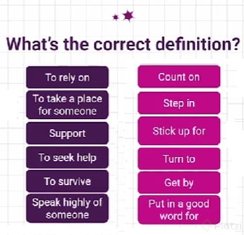 Finalmente, "count on" se refiere a confiar o depender de alguien para recibir apoyo o ayuda. Un ejemplo podría ser: