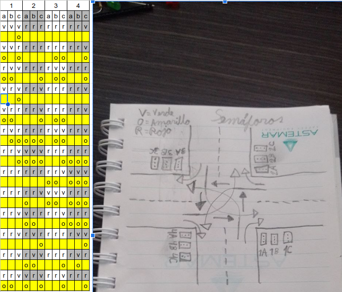 Tu reto es escribir un programa de semáforos con Arduino, este par de semáforos son los encargados de manejar un crucero.