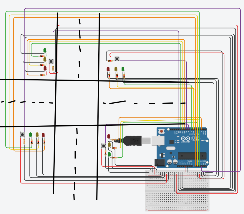 - Debes incorporar botones que permitan avisar que hay personas esperando a cruzar la calle.