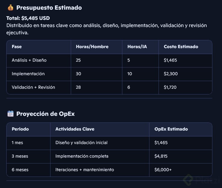- Establecer presupuestos y proyecciones claras de costo operacional y monitoreo.