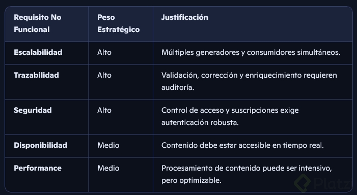 Además, considera si el sistema en uso actual satisface adecuadamente los requisitos no funcionales empresariales: