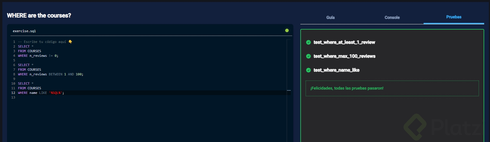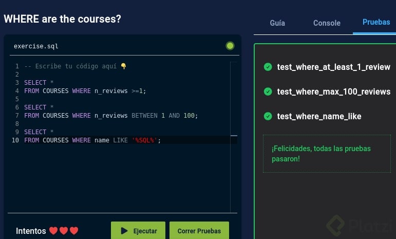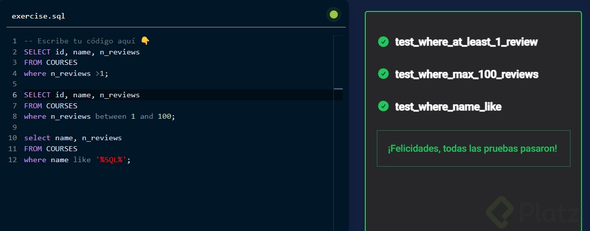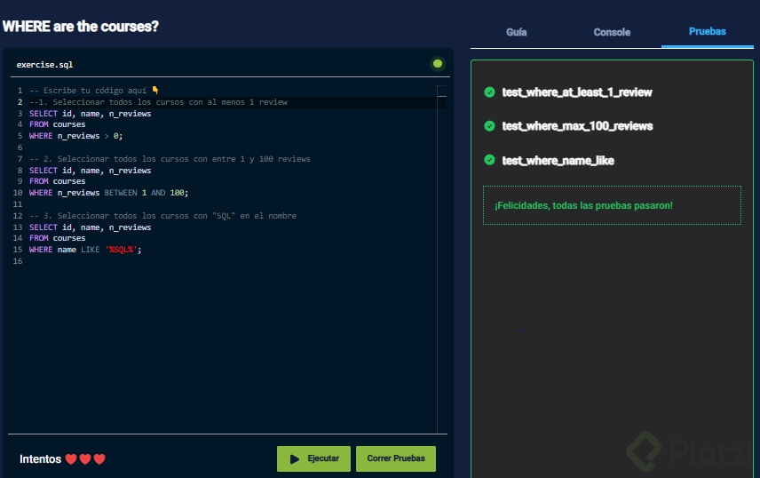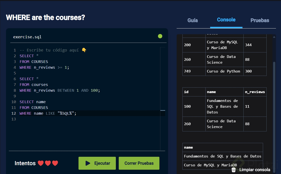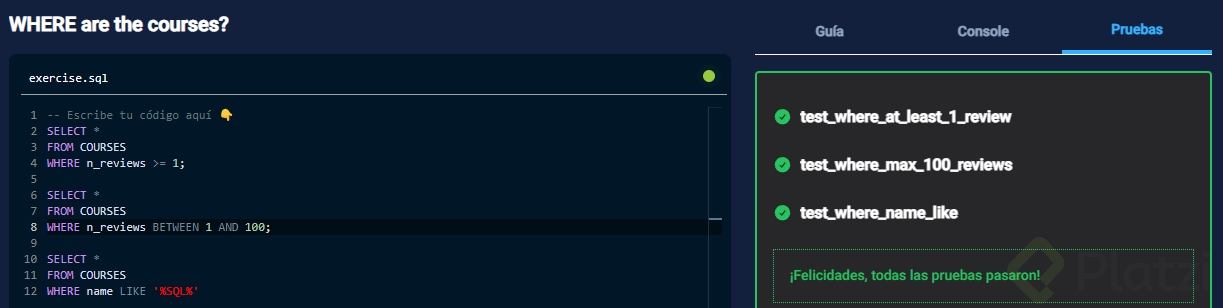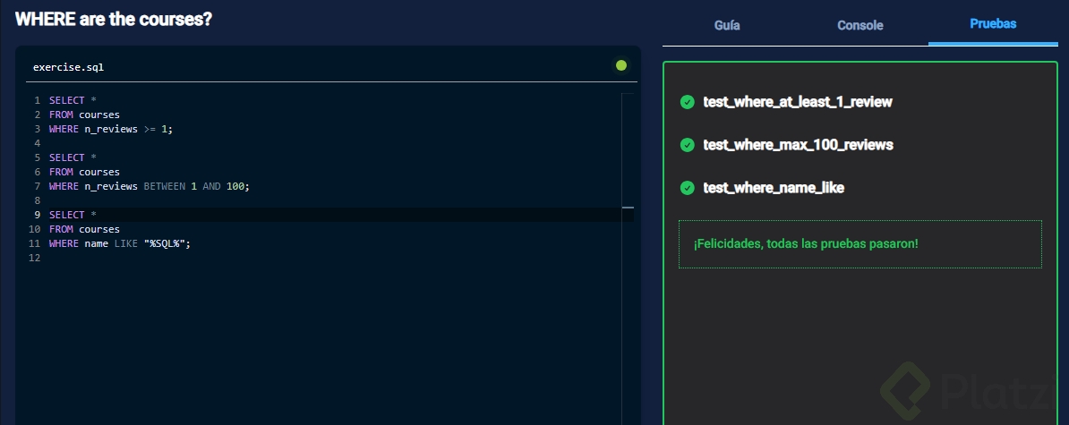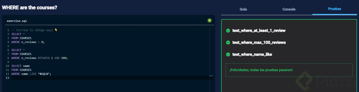 Playground: Filtrando Datos con WHERE