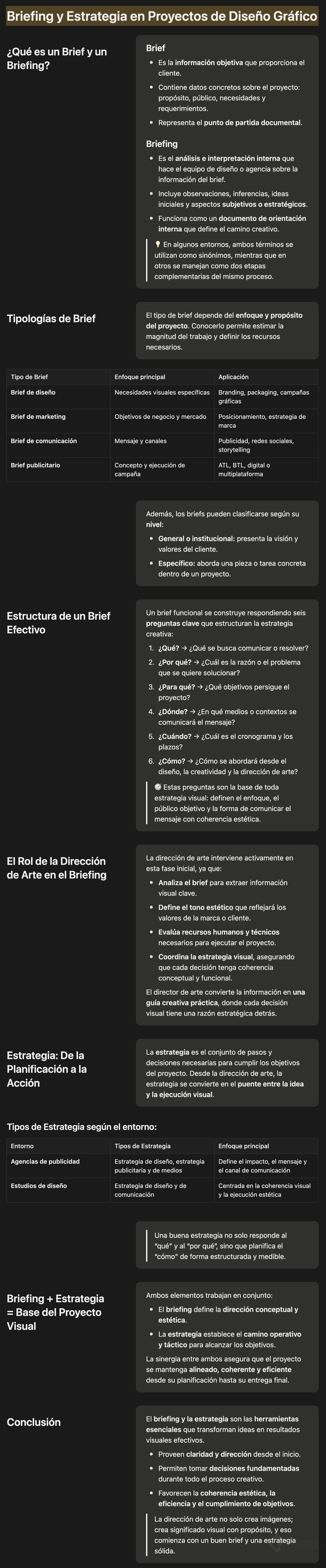 - Estrategia de diseño: Centrada en las decisiones creativas y estéticas que definirán el resultado visual del proyecto.