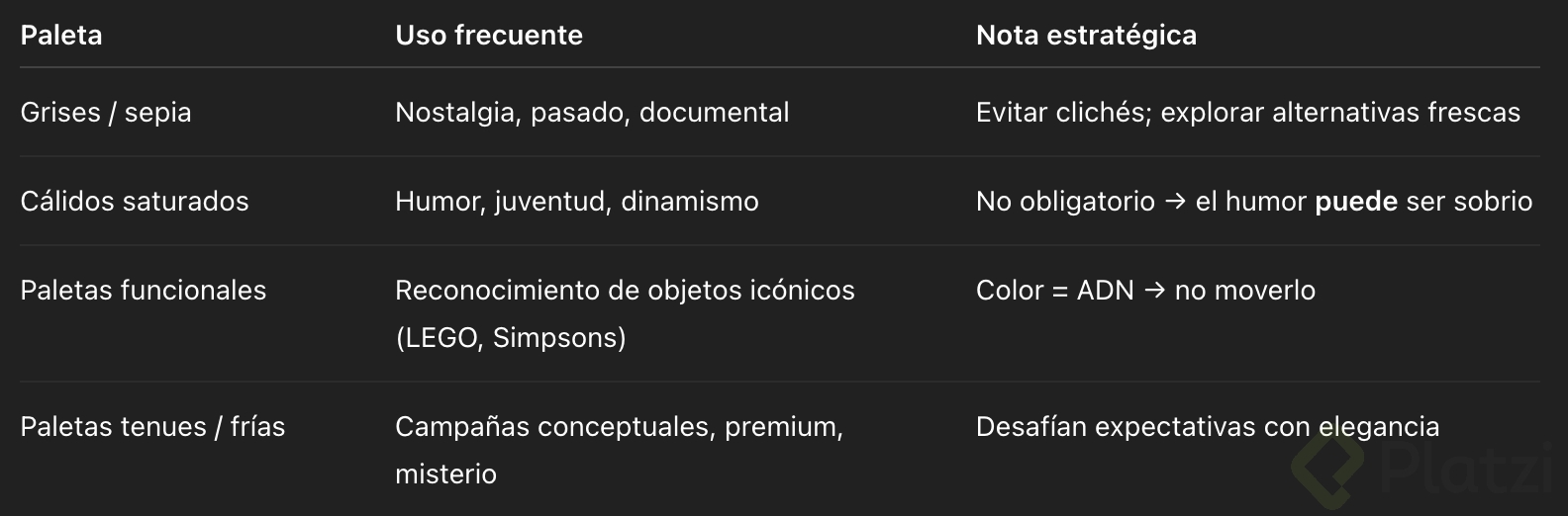 - Paletas funcionales: Como las de LEGO, que aseguran la identificación y conexión con personajes conocidos.