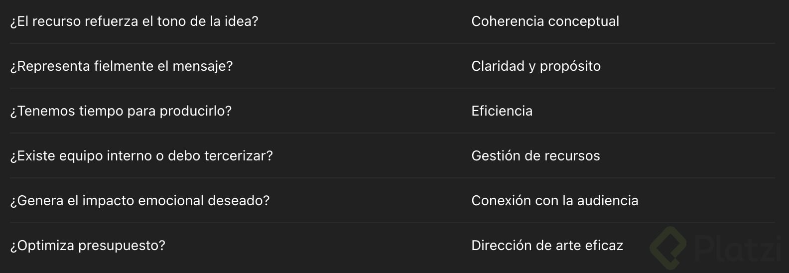 La elección del recurso visual apropiado depende de varios factores, como el tiempo disponible, el equipo con el que se cuenta y el tipo de mensaje que se quiere transmitir. Es esencial que el recurso seleccionado complemente y refuerce la narrativa visual original sin desviarse del mensaje central.