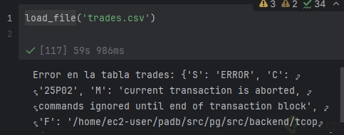 Antes de ejecutar el script, debemos asegurarnos de que la tabla en RepSheet esté vacía, usando la sentencia truncadetruncatedtable.jers. Esto evita sobreescribir datos previos. Si se presentan errores, puede ser debido a conexiones abiertas no cerradas previamente. Debemos cerrar y volver a crear la conexión utilizando con.close() y, posteriormente, abrir una nueva conexión.