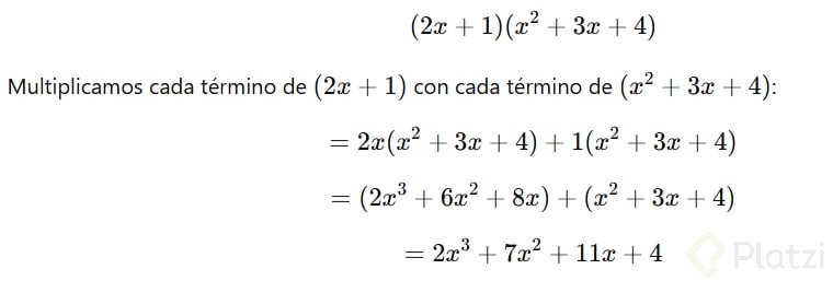 Propiedad distributiva aplicada a productos de polinomios