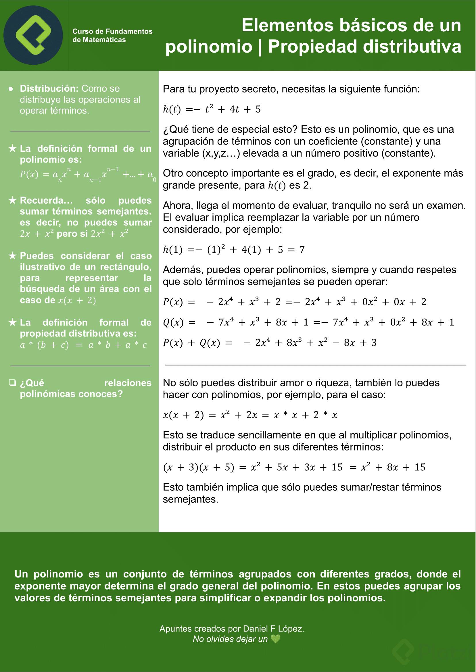 Elementos básicos de un polinomio y evaluación práctica
