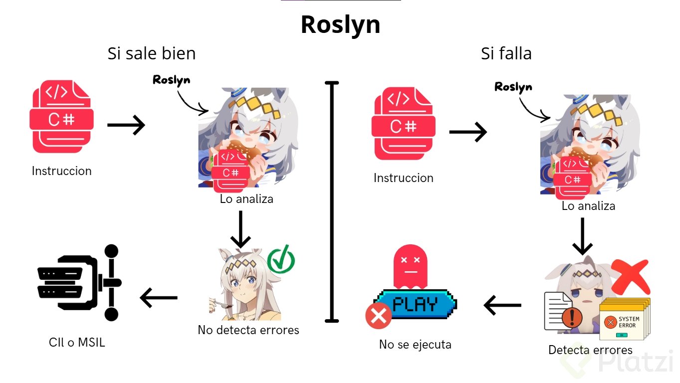 Roslyn, conocido formalmente como .NET Compiler Platform, fue desarrollado paralelamente a nuevas versiones de .NET para hacer que la compilación sea más rápida y eficiente.