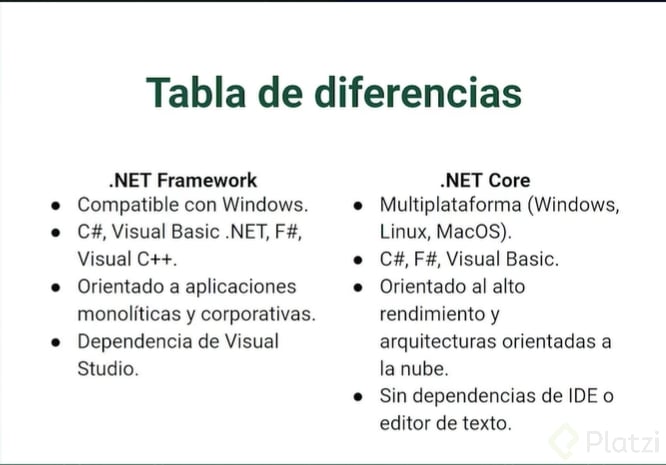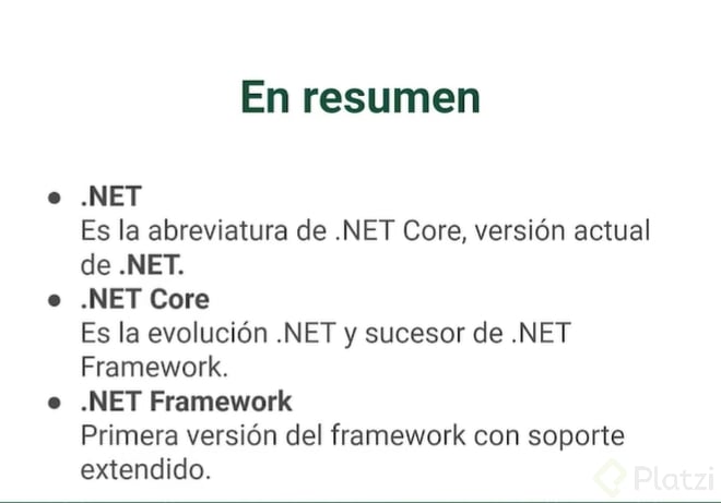 - .NET (anteriormente .NET Core): Se refiere a la versión moderna, flexible y multiplataforma recomendada por Microsoft.