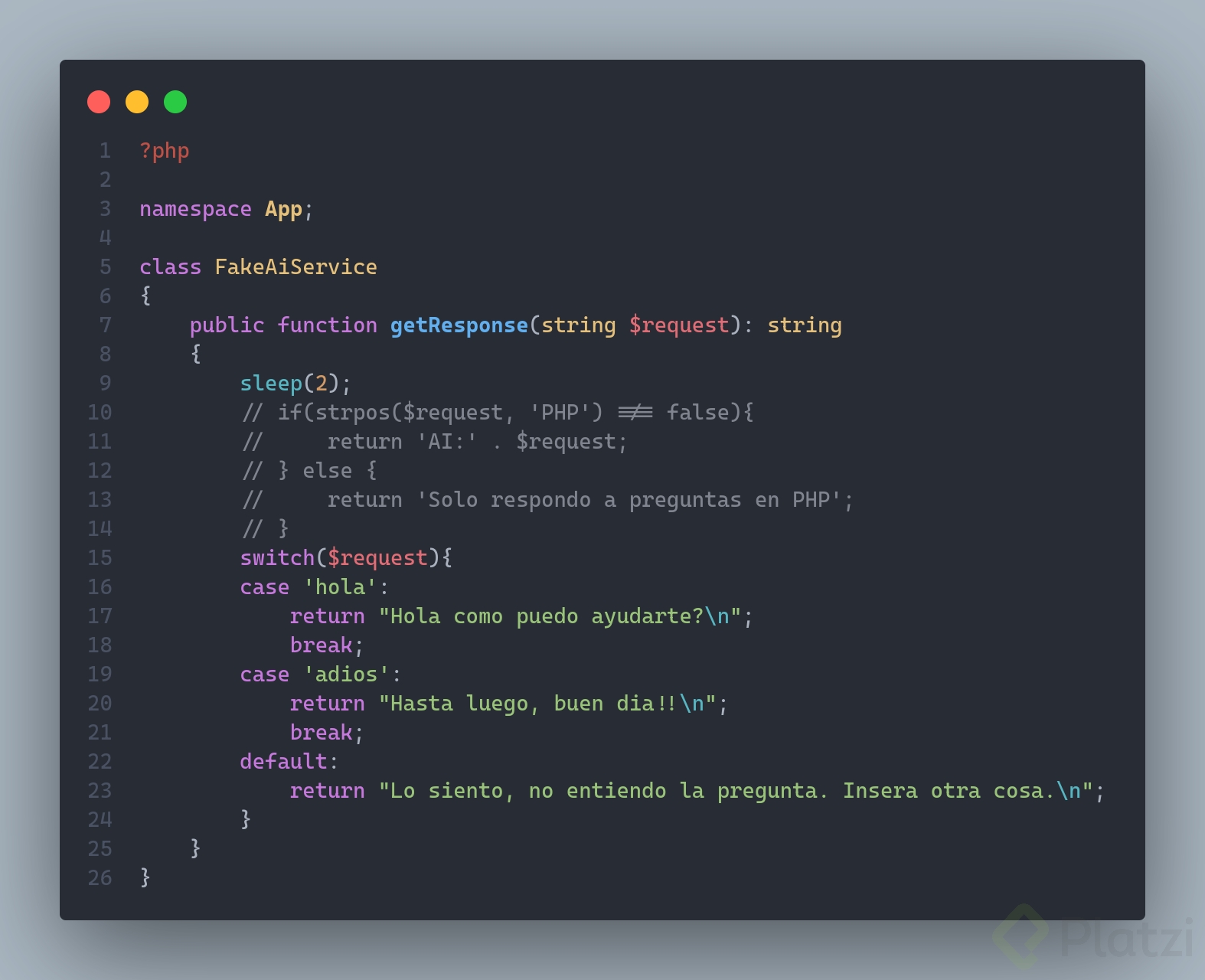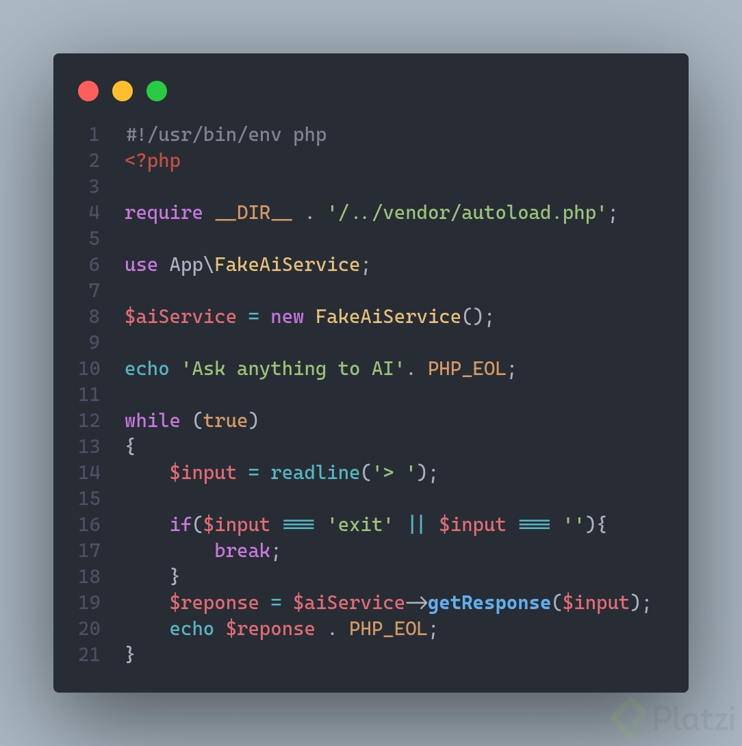 $respuesta = $aiService->obtenerRespuesta('¿Qué es PHP?');