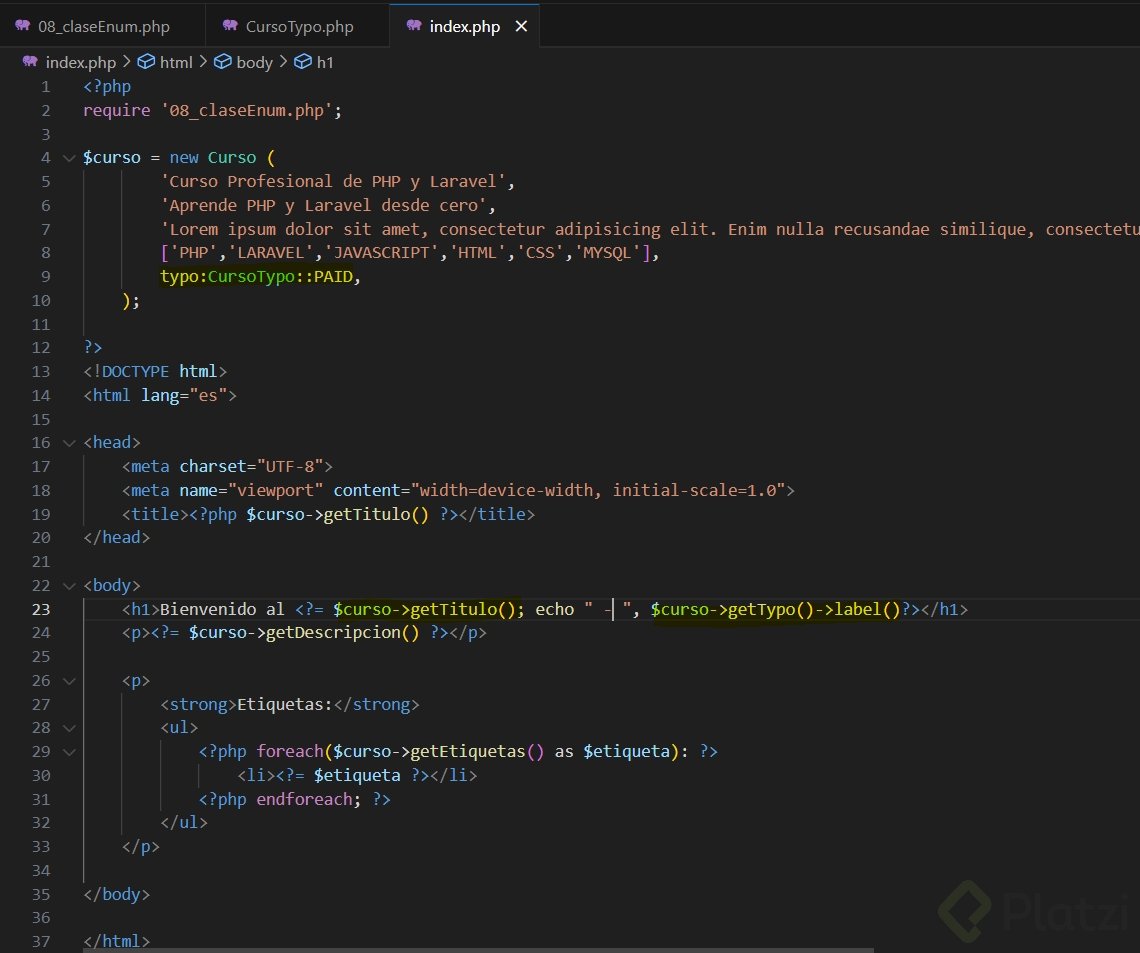 ¿Cómo integrar enumeraciones con la lógica del curso?
