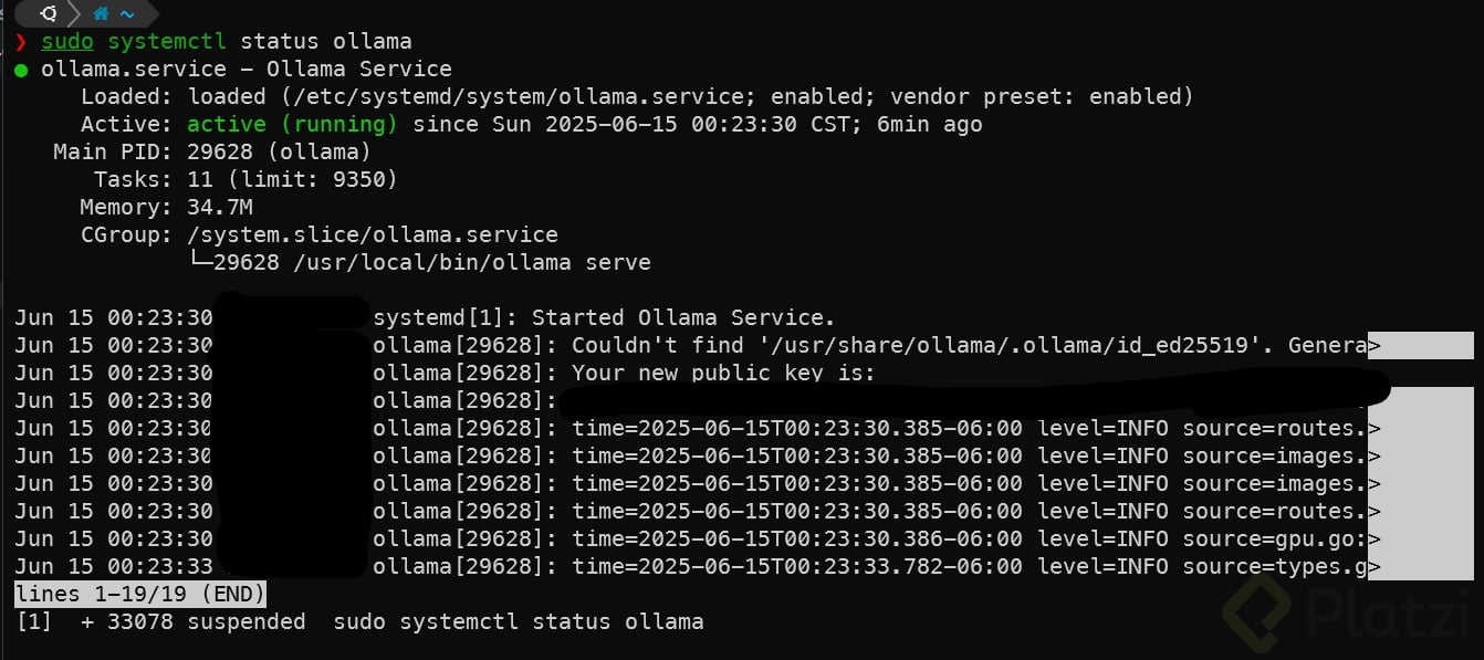 Una vez finalizado el proceso anterior, Olama queda listo y en funcionamiento: