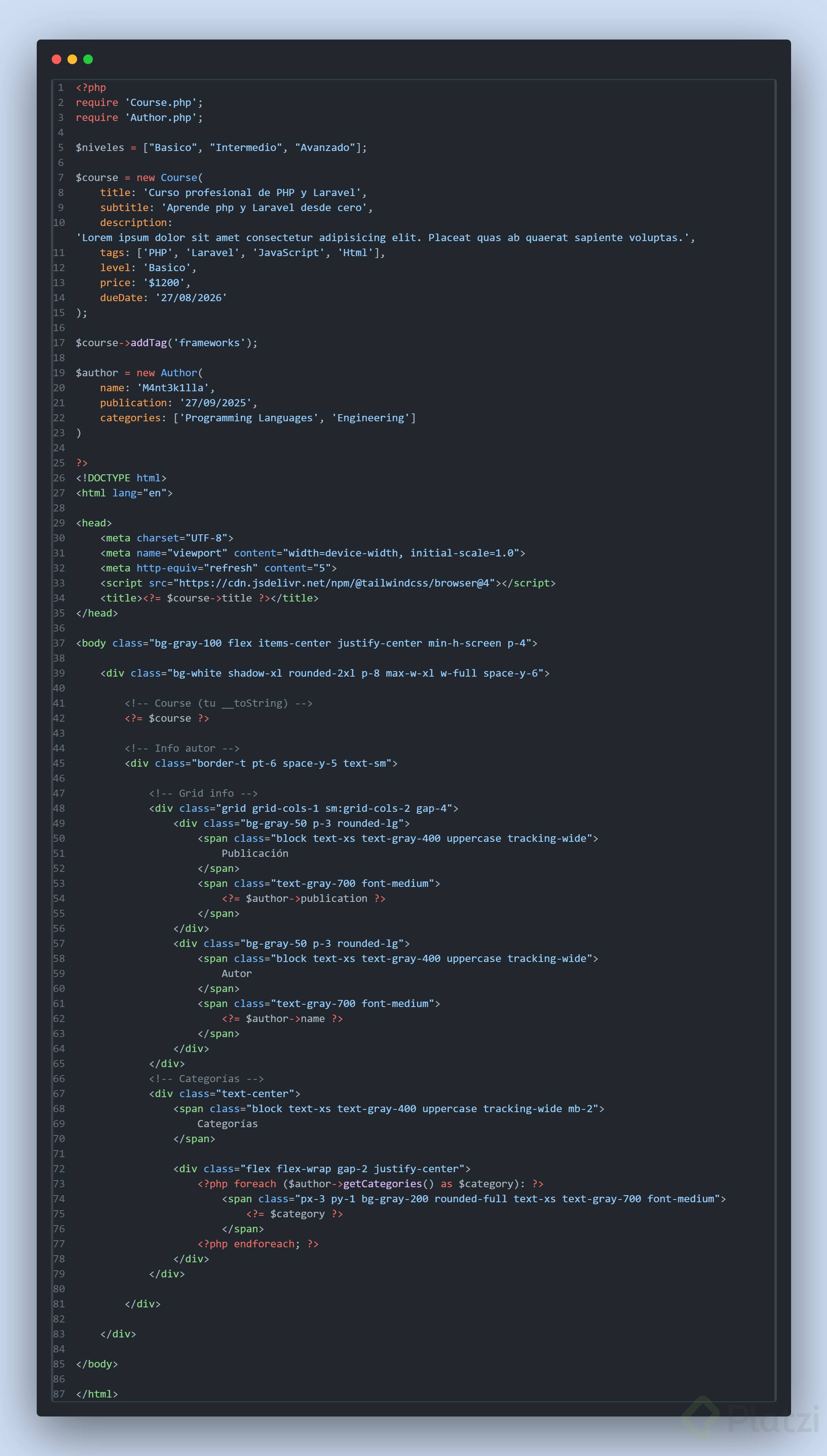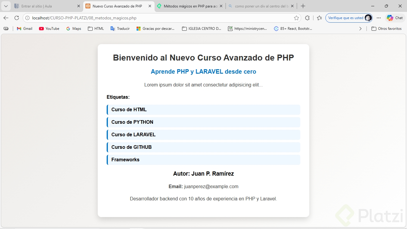 Finalmente, llevar estos aprendizajes a la práctica, creando una clase real como "Autor", permitirá consolidar estos importantes conceptos de PHP en escenarios reales de programación.