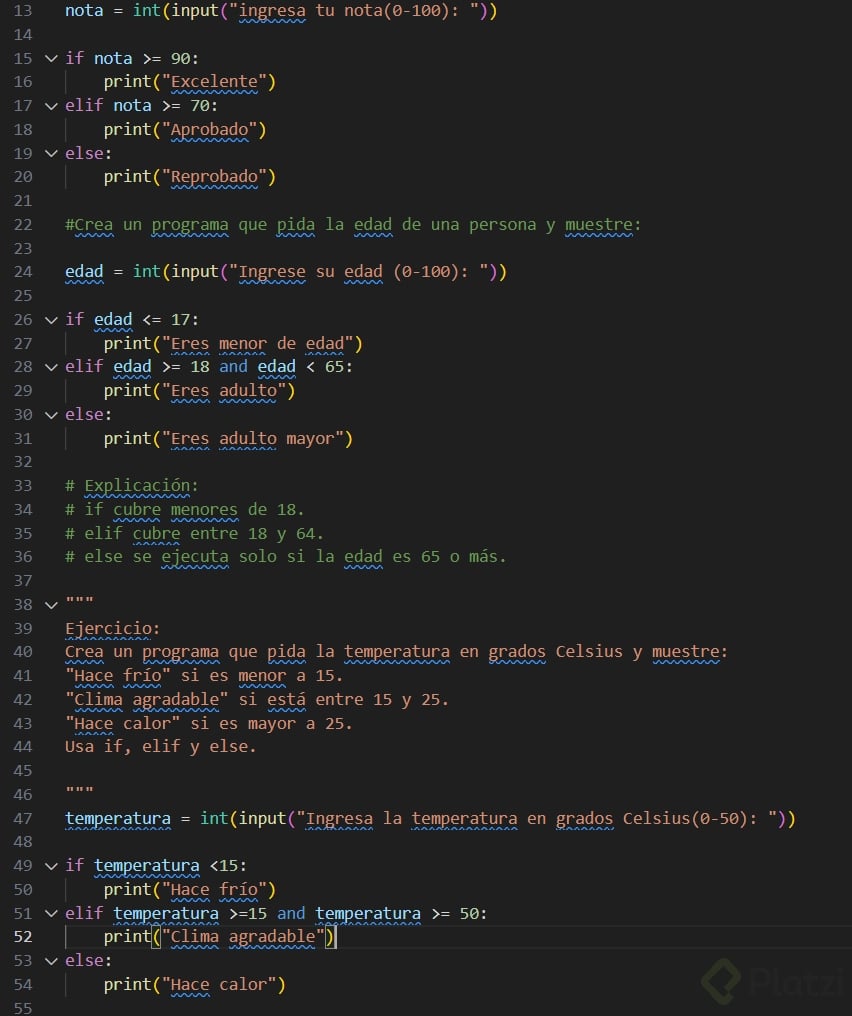 Si ninguna condición previa se cumple, else define el camino alternativo. Puedes encadenar decisiones con if anidados sin introducir nuevas sentencias.