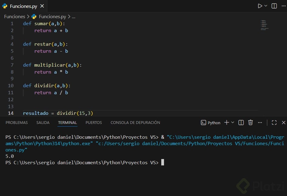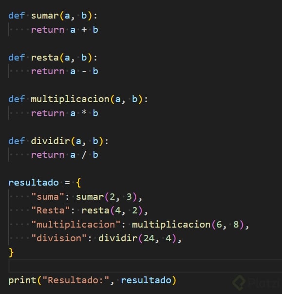 ¿Te animas al desafío final? Comparte en los comentarios cómo harías para restar, multiplicar y dividir usando funciones, siguiendo el ejemplo de la suma.