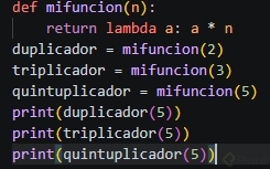 duplicador = mi_función(2) triplicador = mi_función(3)