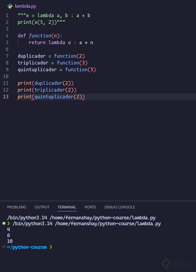 Las lambdas en Python simplifican operaciones puntuales con código claro y directo. Aquí entenderás qué es una función anónima, cómo manejar argumentos y cómo crear una fábrica de funciones para construir un duplicador y un triplicador con poca sintaxis y alto impacto.