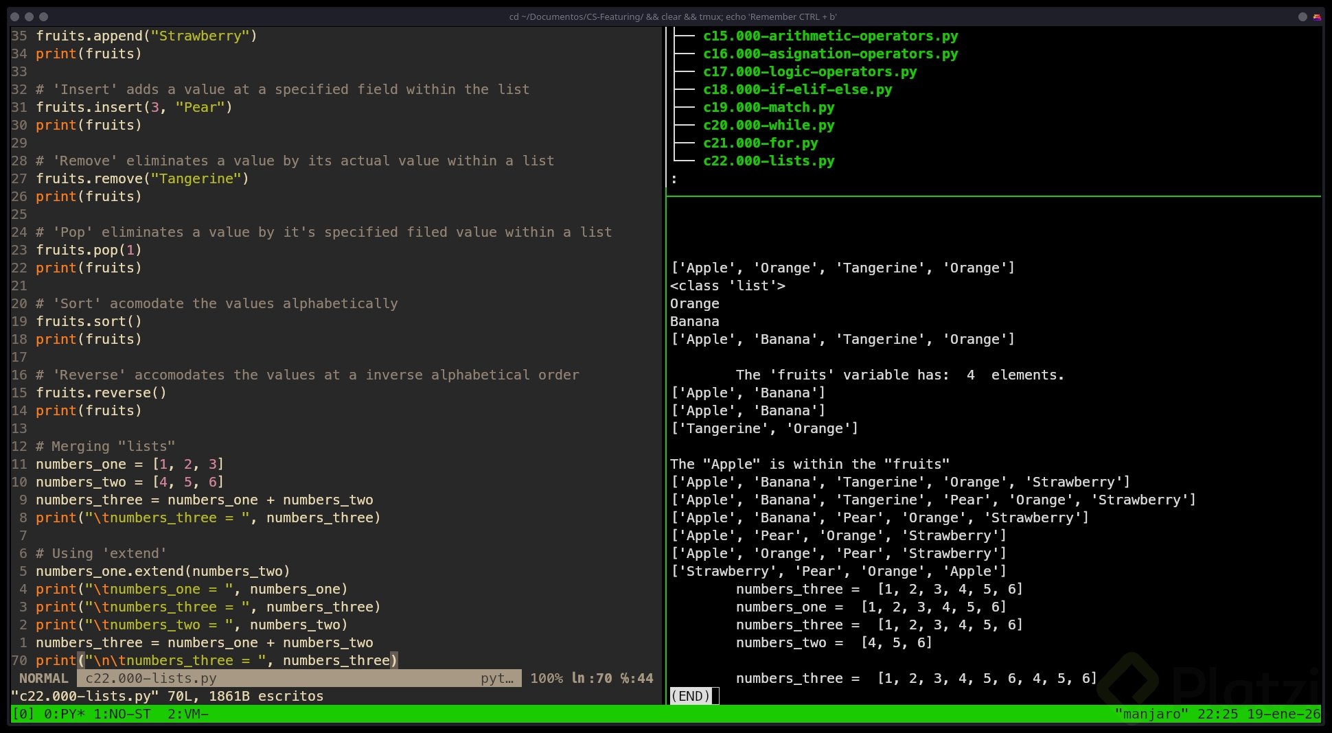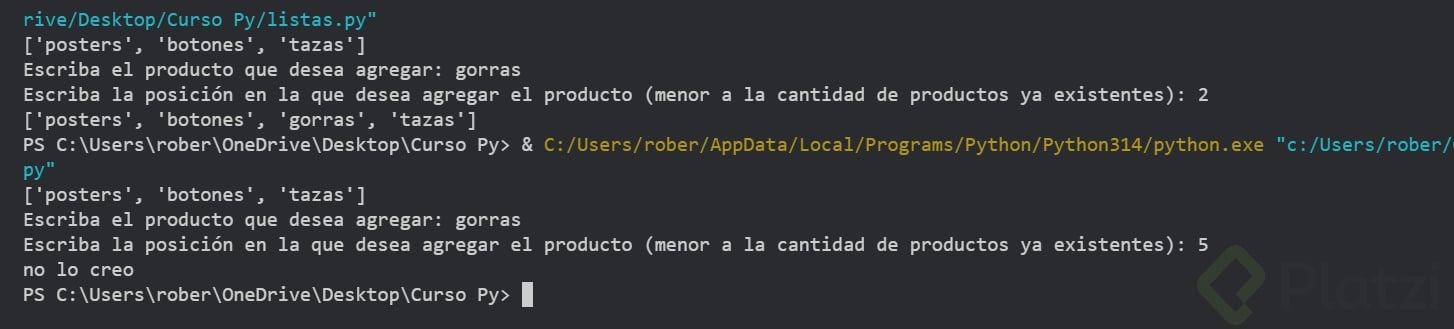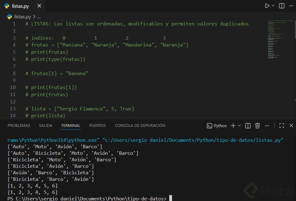 Nota clave: Python ejecuta de arriba hacia abajo. Verás cambios reflejados solo después de la línea que modifica la lista.