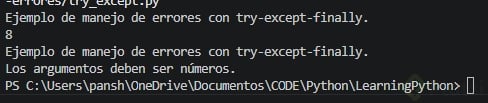 - Funciona tanto si el try fue exitoso como si hubo error.