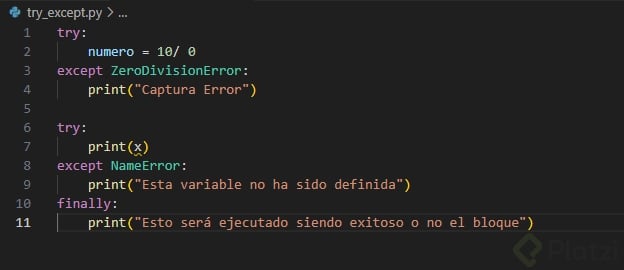 ¿Cómo capturar errores comunes: ZeroDivisionError y NameError?