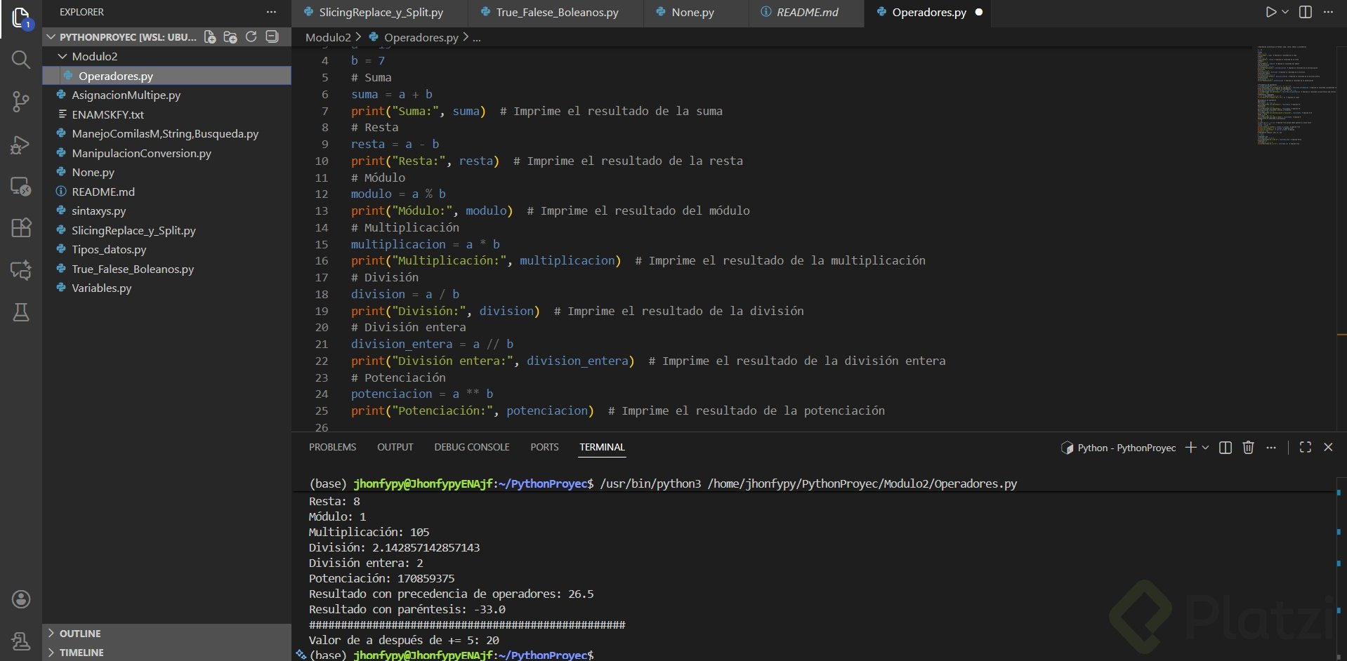 Operadores aritméticos en Python: suma, resta, módulo y precedencia