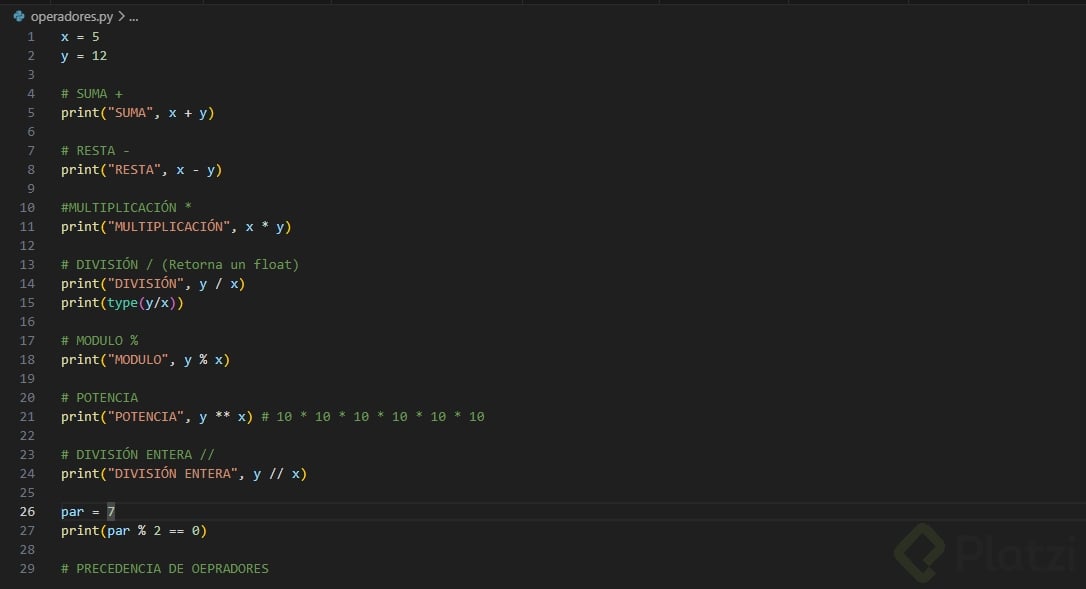 Domina los operadores aritméticos en Python con ejemplos claros y resultados esperados. Aquí verás cómo aplicar suma, resta, multiplicación, división, módulo, potencia y división entera, cómo validar si un número es par con el operador de igualdad, y cuál es la precedencia de operadores que guía la evaluación de expresiones.