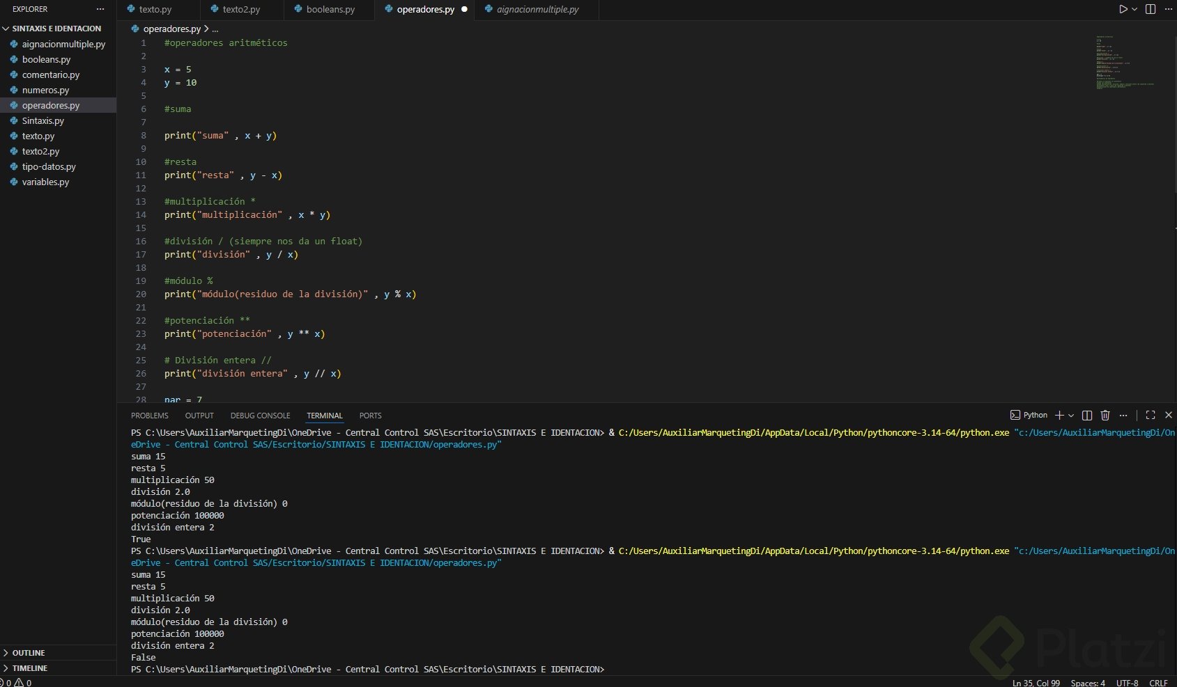 Sintaxis e indentación básica en Python con Visual Studio Code