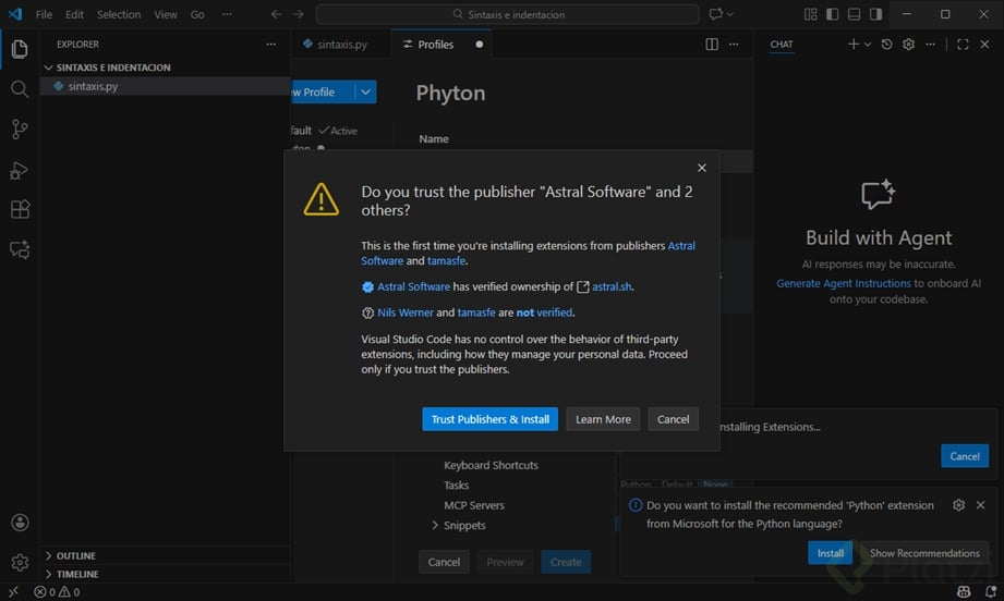 Configurar un entorno dedicado evita errores y acelera tu práctica diaria. Visual Studio Code permite crear un perfil de Python con extensiones clave para ejecutar y analizar tu código sin fricción.