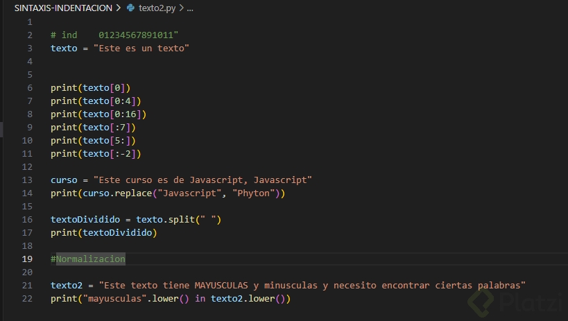¿Te gustaría practicar más? Comparte en comentarios tus propios ejemplos de slicing, replace, split y comparaciones con lower para que podamos revisarlos juntos.