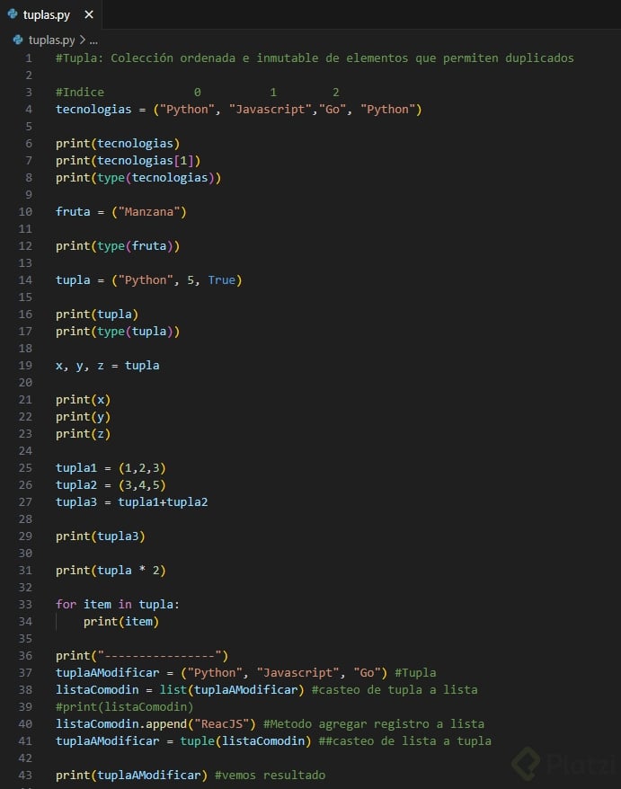 print(tupla_a_modificar) # ('Python', 'JavaScript', 'Go', 'React JS')