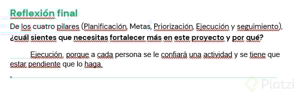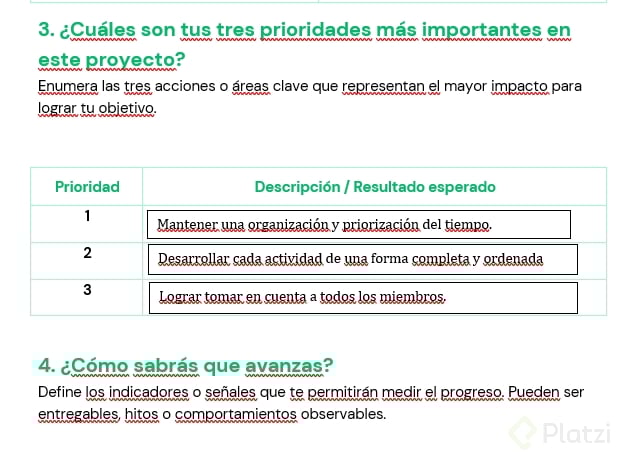 - ¿Cuáles son tus tres prioridades más importantes en este proyecto?.