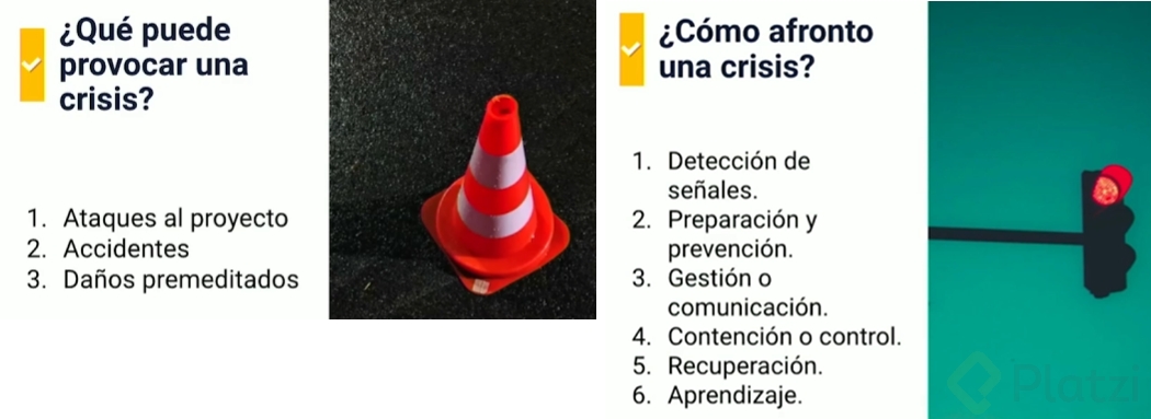 Preparación y prevención: Desarrollar un plan anticipado para mitigar impactos potenciales. Esto implica analizar experiencias de crisis anteriores en proyectos similares y establecer medidas proactivas.