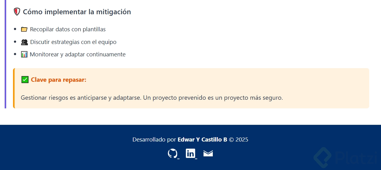 - Discusión con el equipo: Incorporar las perspectivas diversas del equipo en la estrategia de mitigación.